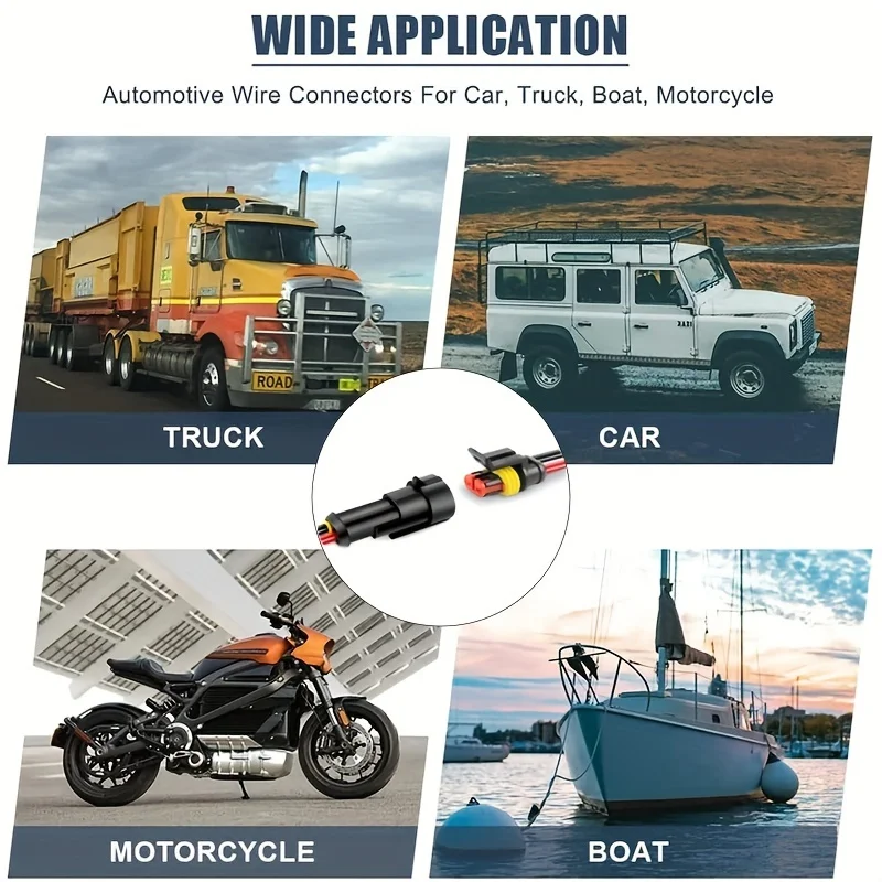 10pcs 5 Sets Waterproof Automotive Male Female Electrical Connectors Plug 2-Pin Way With Wire For Car Motorcycle Scooter Marine